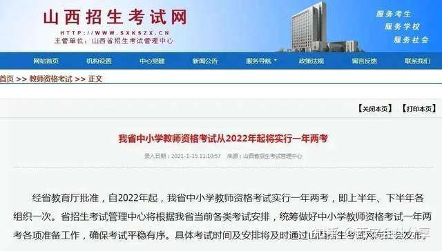 山西:经山西省教育厅批准,自2022年起,山西省中小学教师资格考试实行一年两考,即上半年、下半年各组织一次。