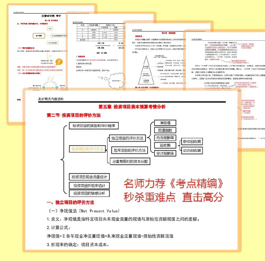 《62页考点精编》是专门为CPA冲刺阶段的考生准备的针对涨分策略+考点,总结归纳高频、常考精华考点,公共科目更是将常见高频考点以试卷问答形式展现出来,极大方便考生考前背诵+练习,双方法记忆备考才能确保足够高效!